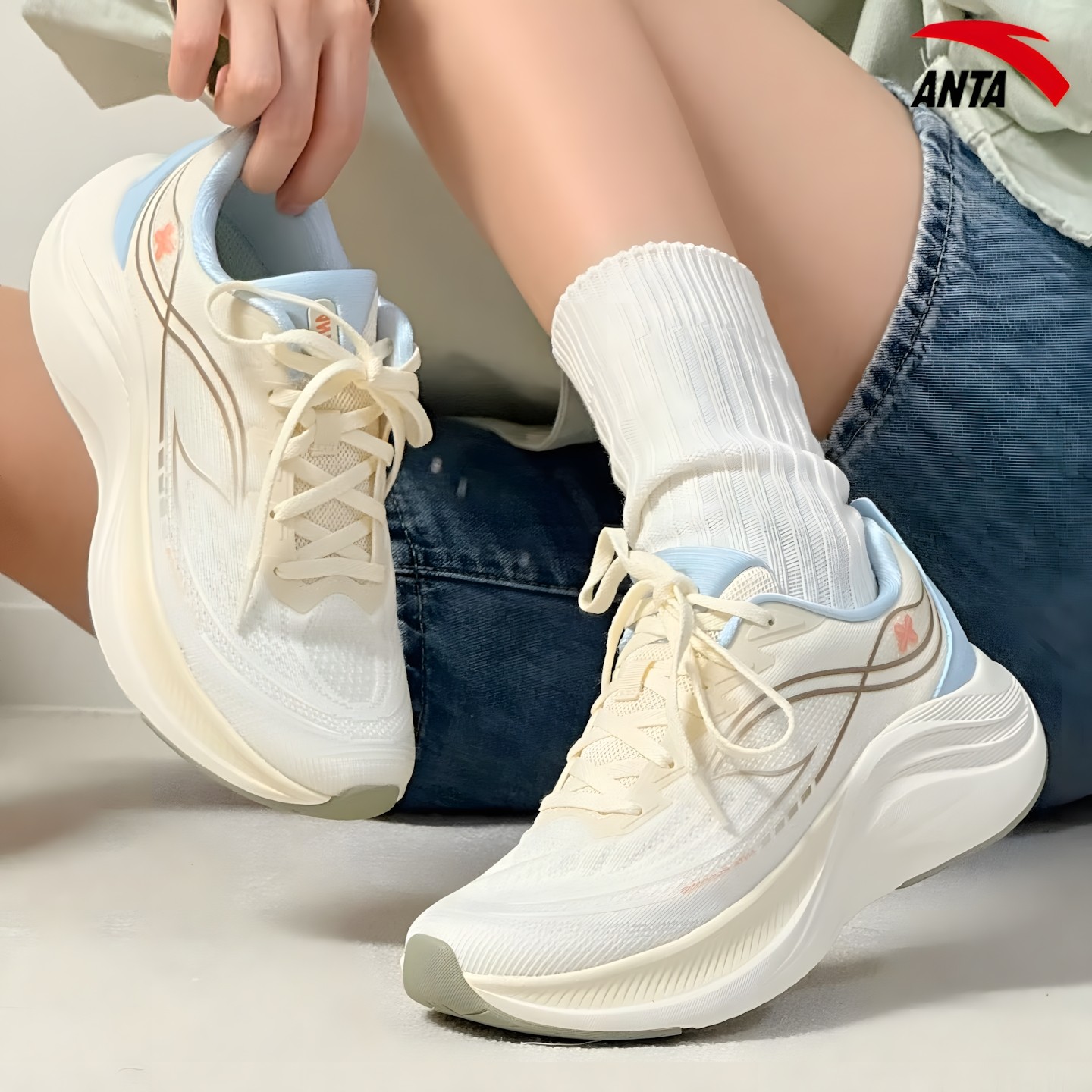 安踏叶子6女鞋减震跑步鞋厚底轻便2026新款跳绳鞋百搭休闲运动鞋