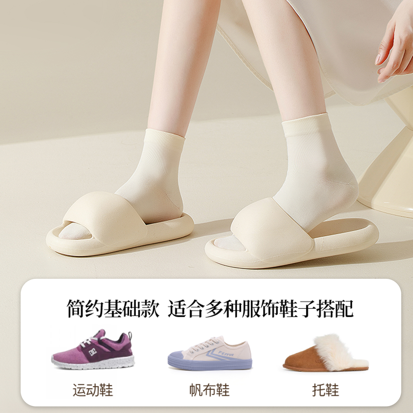 袜子女秋季薄款防臭吸汗透气纯色抑菌春秋中筒袜无骨短袜白色女袜