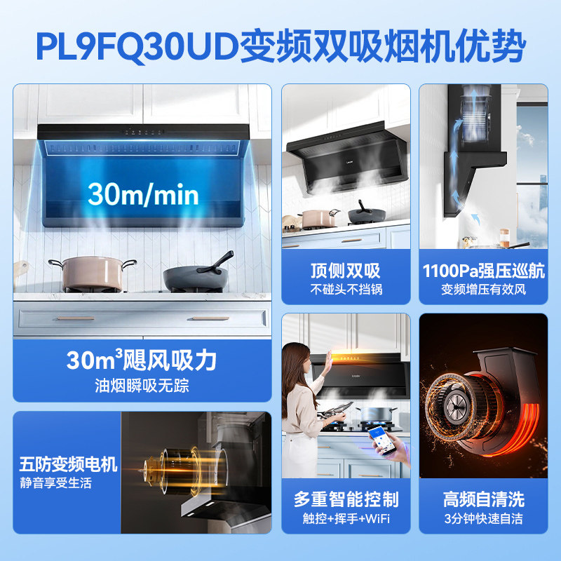 海尔抽油烟机PL9FQ30UD变频家用厨房大吸力顶侧双吸官方旗舰店
