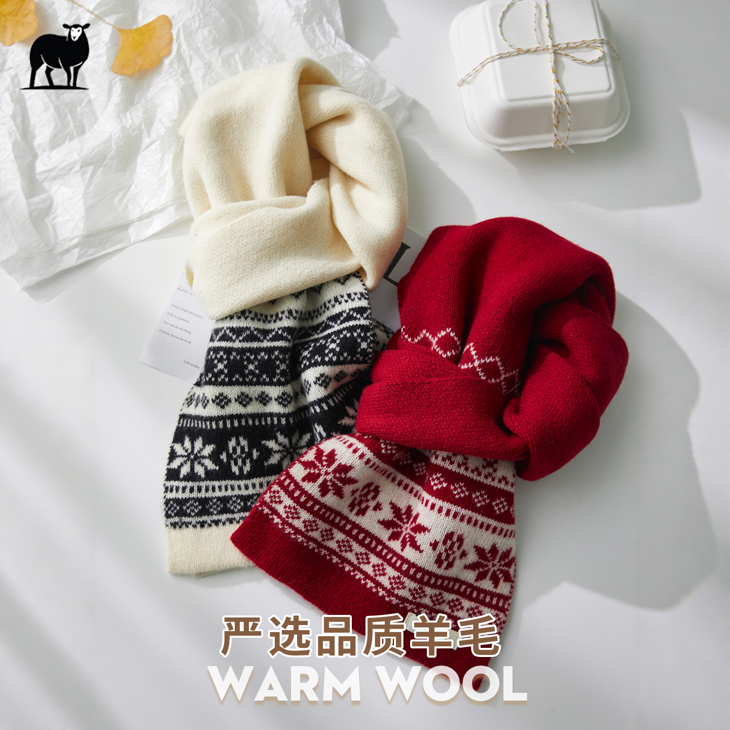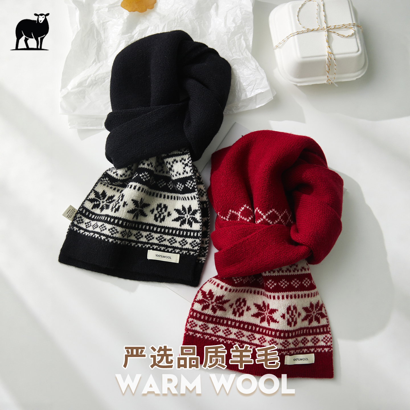 100%澳洲纯羊毛复古高级雪花送礼围巾送女朋友闺蜜妈妈秋冬季围脖