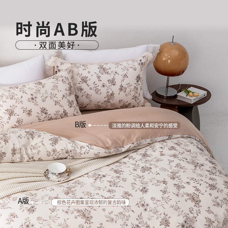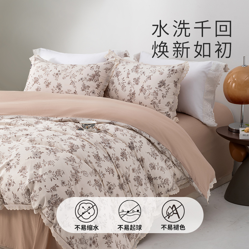 门店同款多喜爱全棉四件套双层纱纯棉床单被套复古风床上用品套件