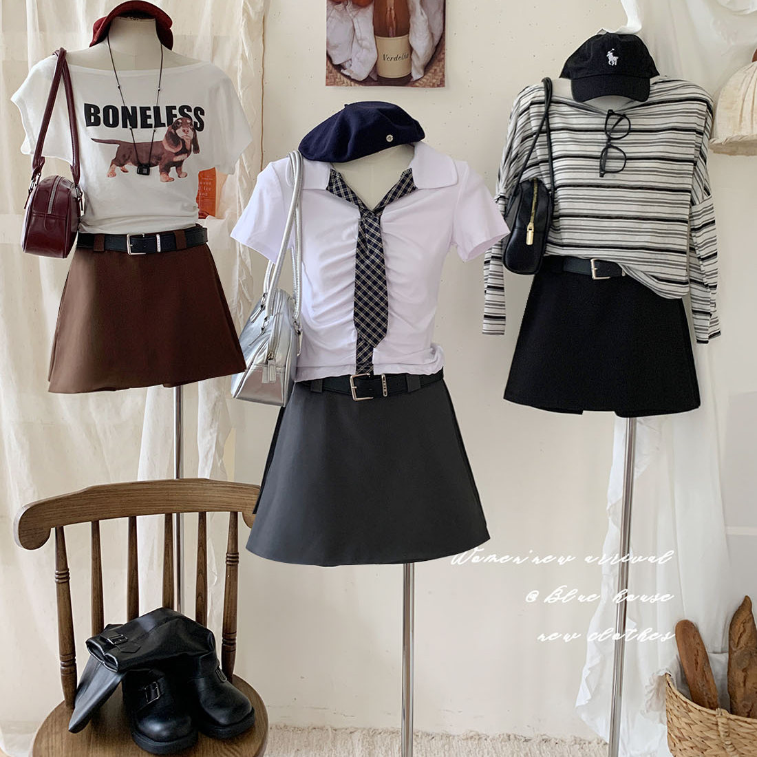 韩日气质西装短裙裤女夏秋小个子防走光开叉假两件包臀A字半身裙