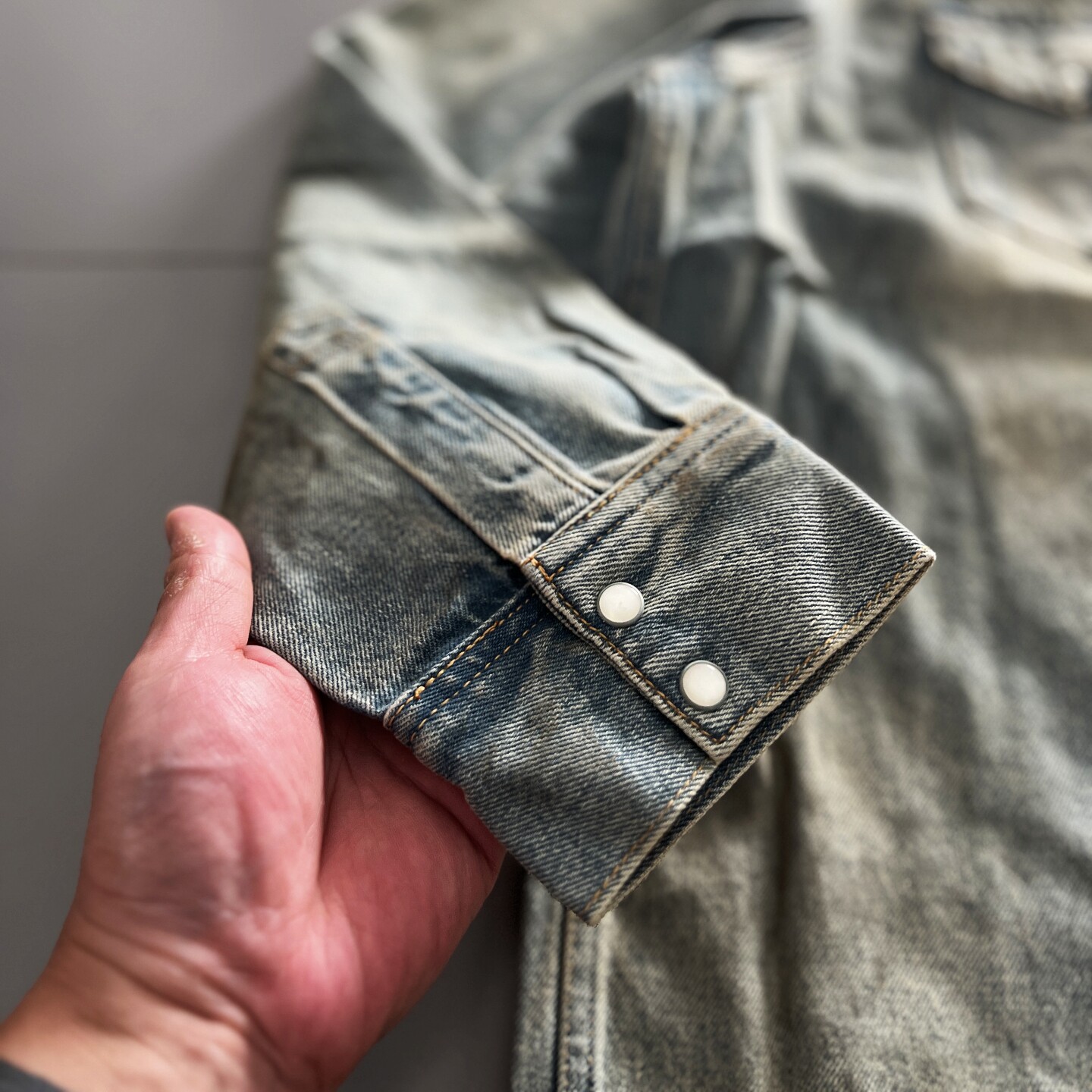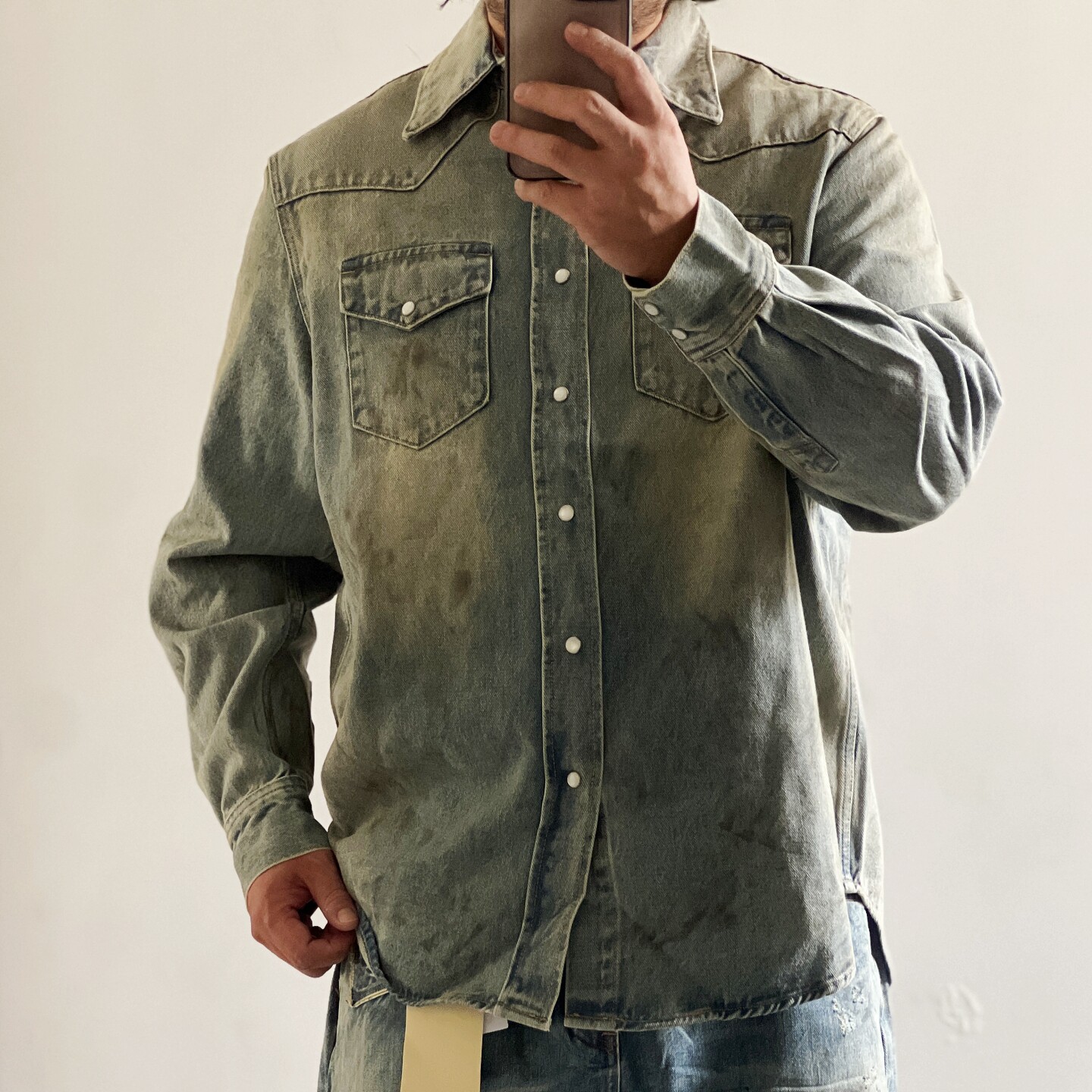 BEN'S制品Vintage日产泥染水洗做旧宽版廓形重磅12盎牛仔衬衫外套