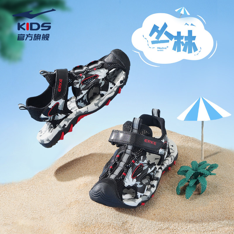 鸿星尔克儿童凉鞋2025夏季新款网面透气包头男童沙滩鞋中大童鞋子