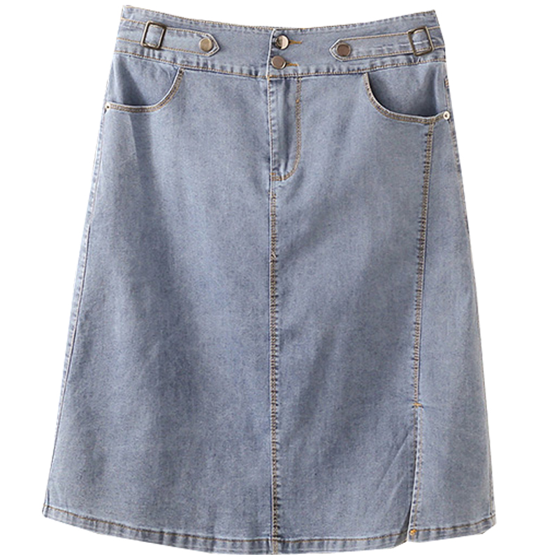夏季大码200斤牛仔弹力半身裙女高腰显瘦开叉包臀a字中裙五分裙子
