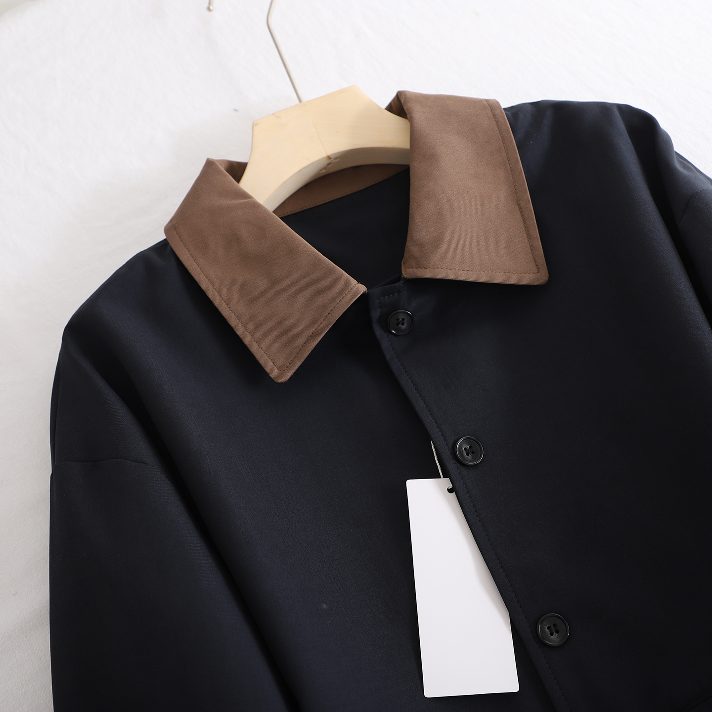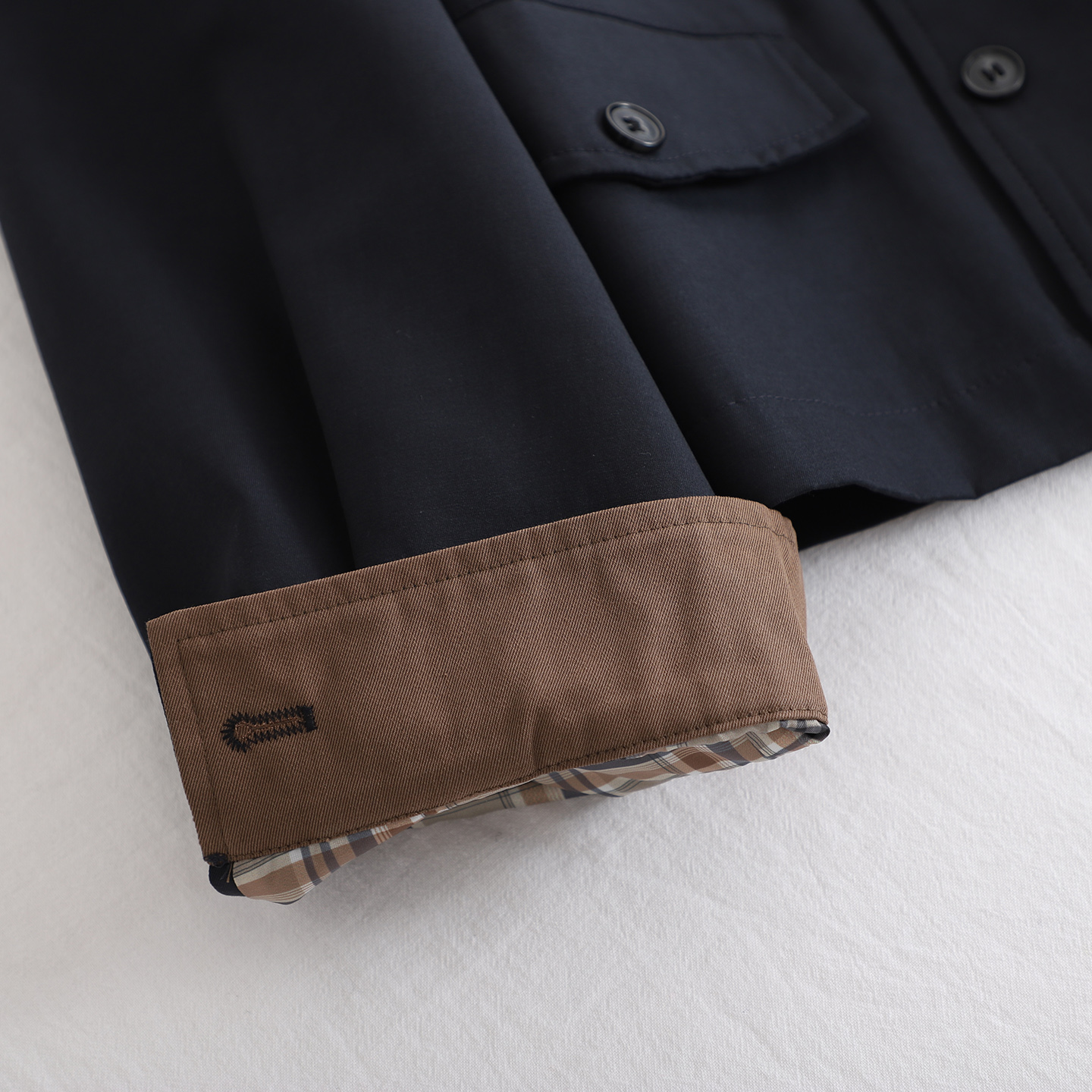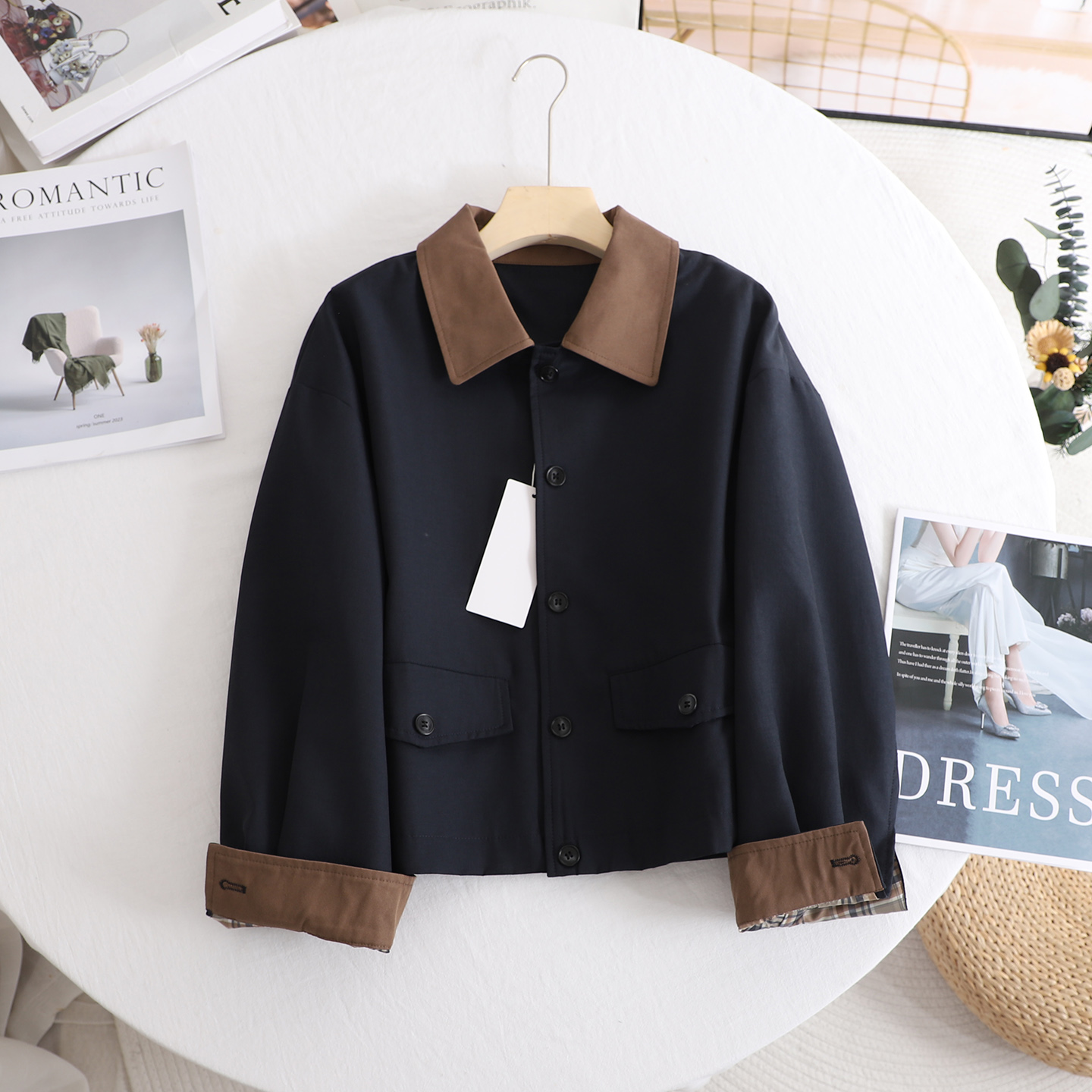 诗系!2025秋季新款巴恩风撞色翻领休闲百搭小个子短款风衣外套女
