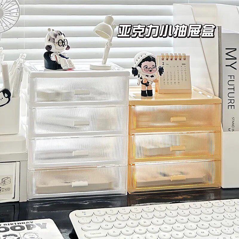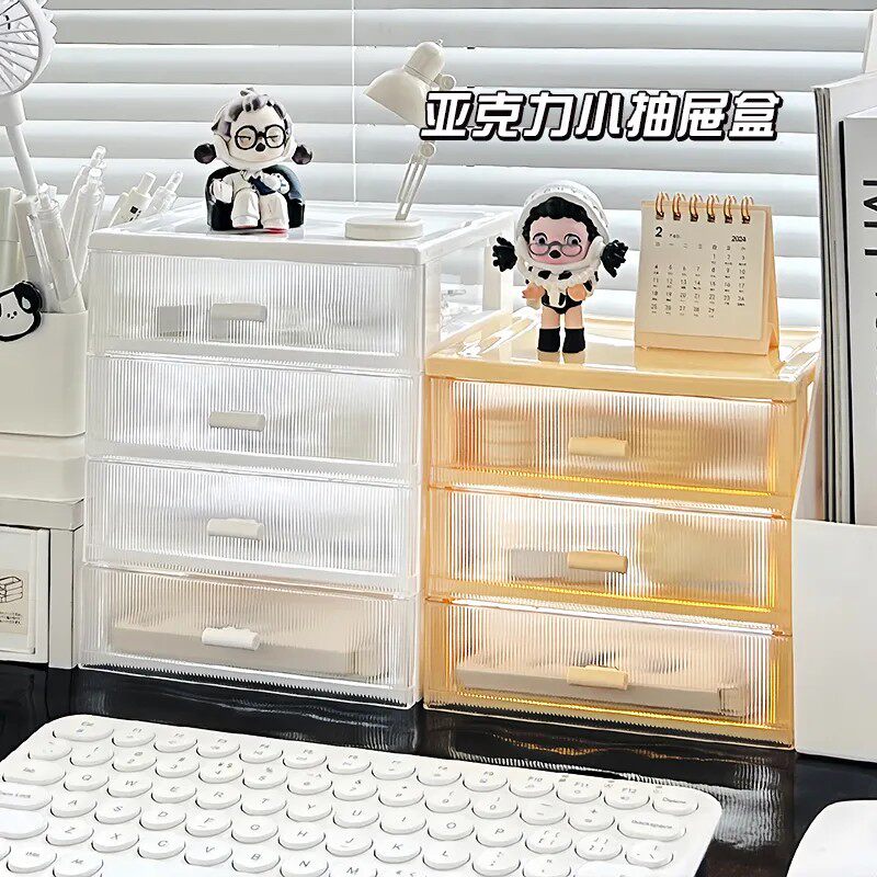 首饰收纳盒抽屉式2026新款办公学生书桌化妆品小盒子置物架