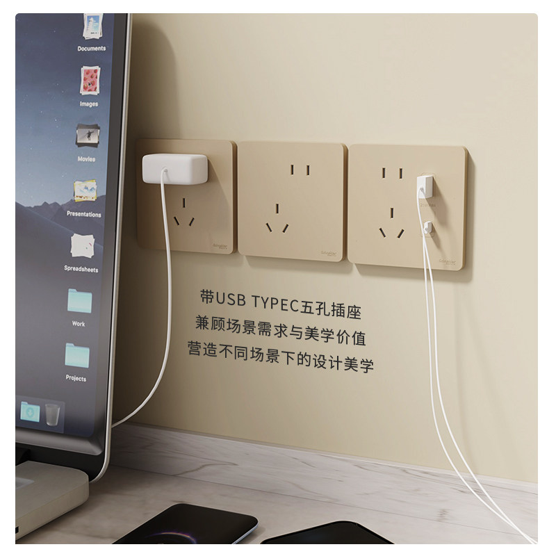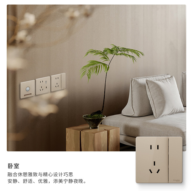 施耐德开关插座官方旗舰店皓隽摩卡棕系列插座多孔86超薄开关面板