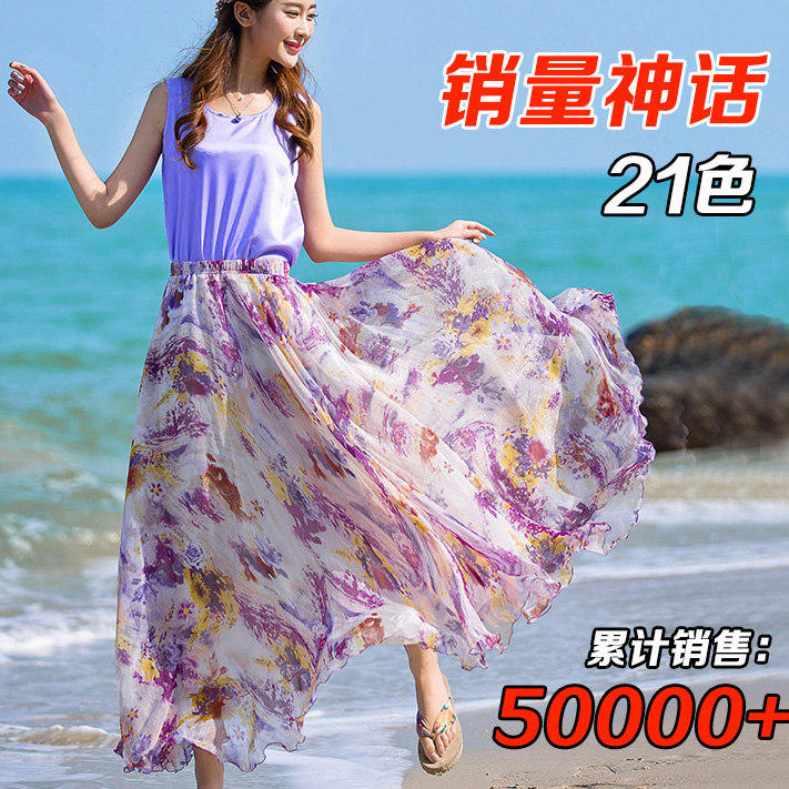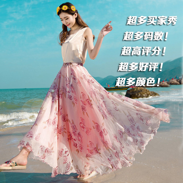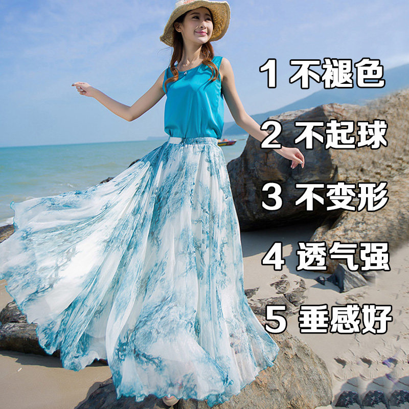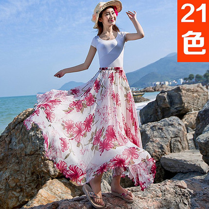 波西米亚雪纺印花半身裙长裙大码碎花拖地沙滩裙8米大摆仙女裙夏