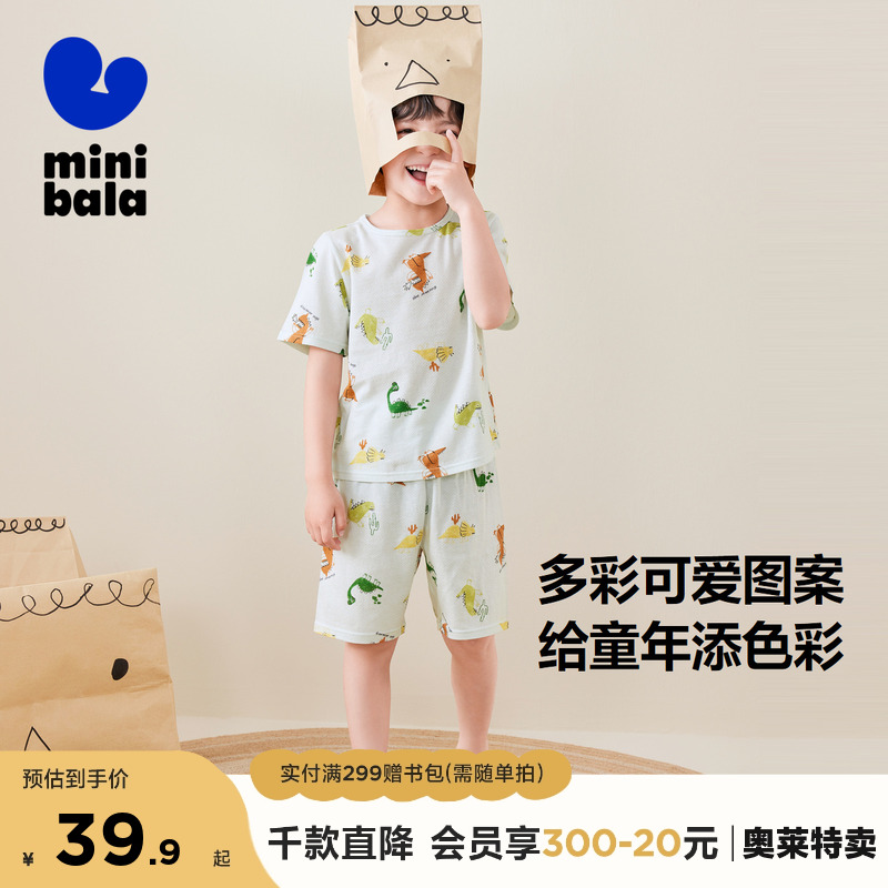 迷你巴拉巴拉男童睡衣女童夏季薄款宝宝纯棉家居套装儿童睡衣男孩