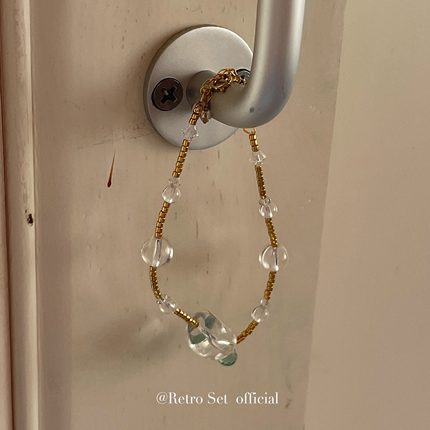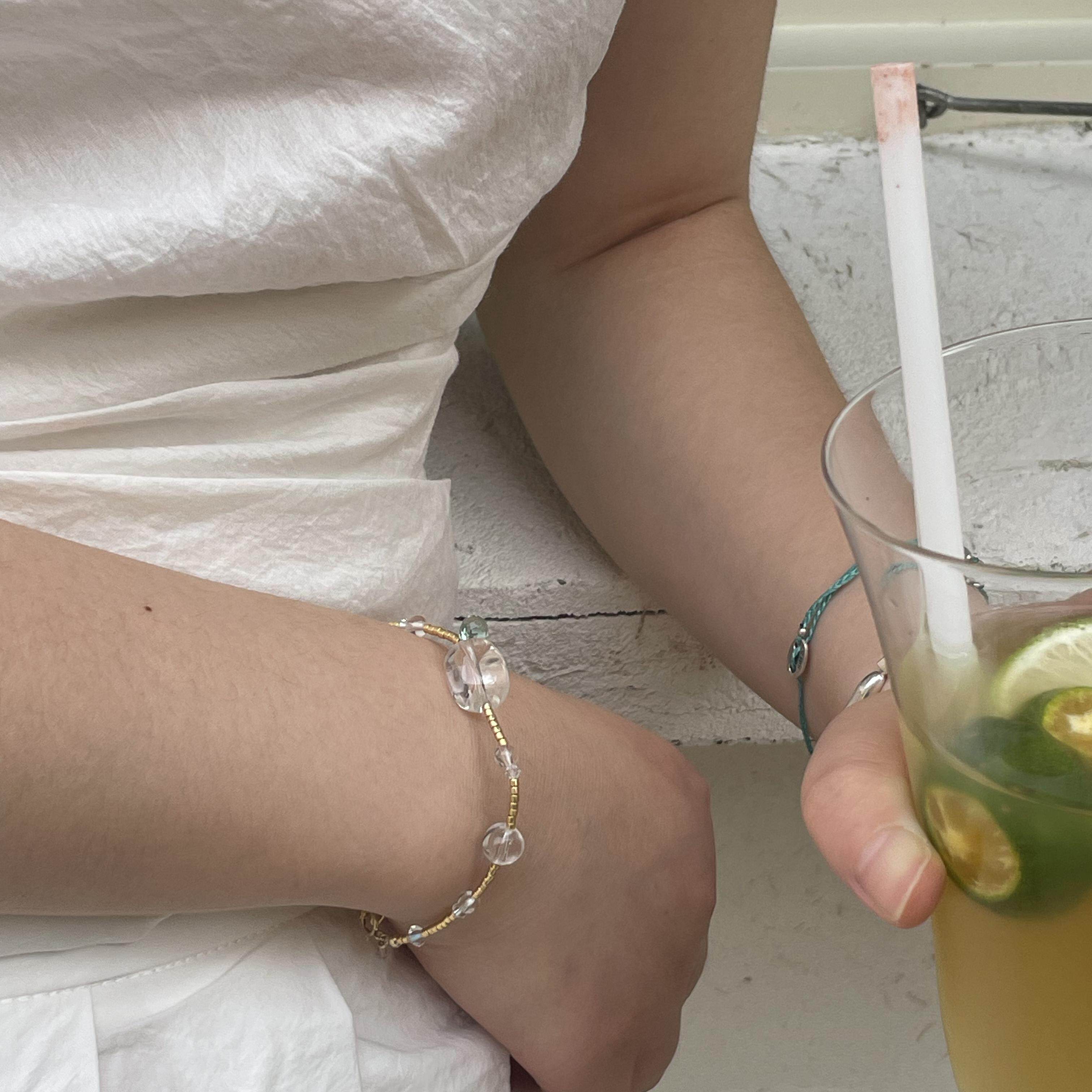 小众设计夏日清凉感天然白水晶金色古董珠彩色宝石串珠手链手串