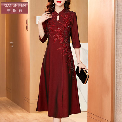 香妮芬高端妈妈婚宴礼服2025新款秋季高贵优雅连衣裙喜婆婆宴会装
