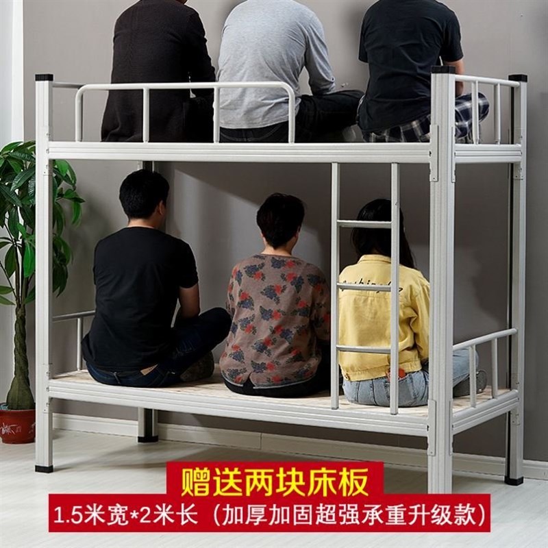 铁艺上下床工地上下铺员工宿舍高低床钢木双层床加厚铁架床铁架子