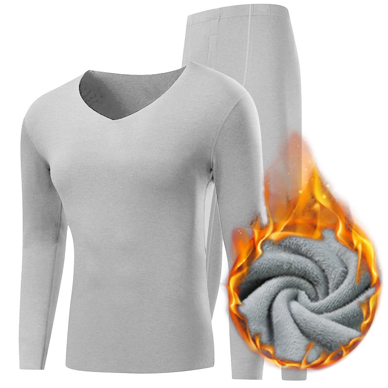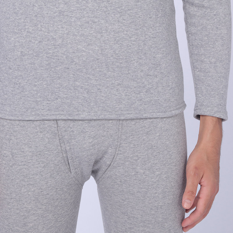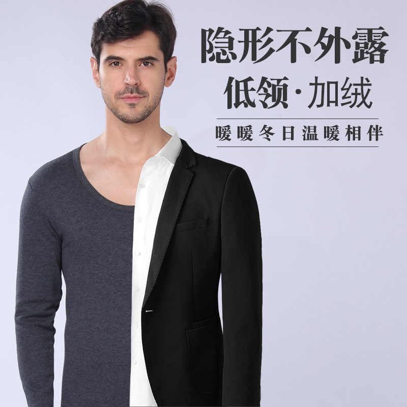 加绒保暖内衣男超低领秋衣秋裤套装纯棉加厚大领口贴身上衣打底衫