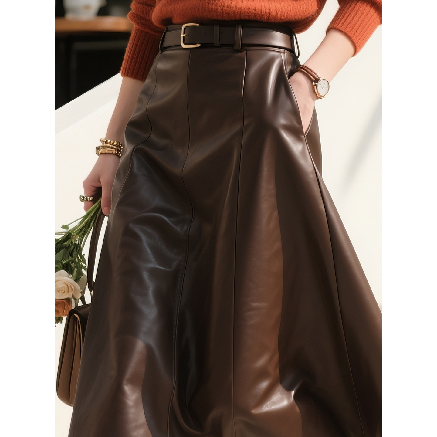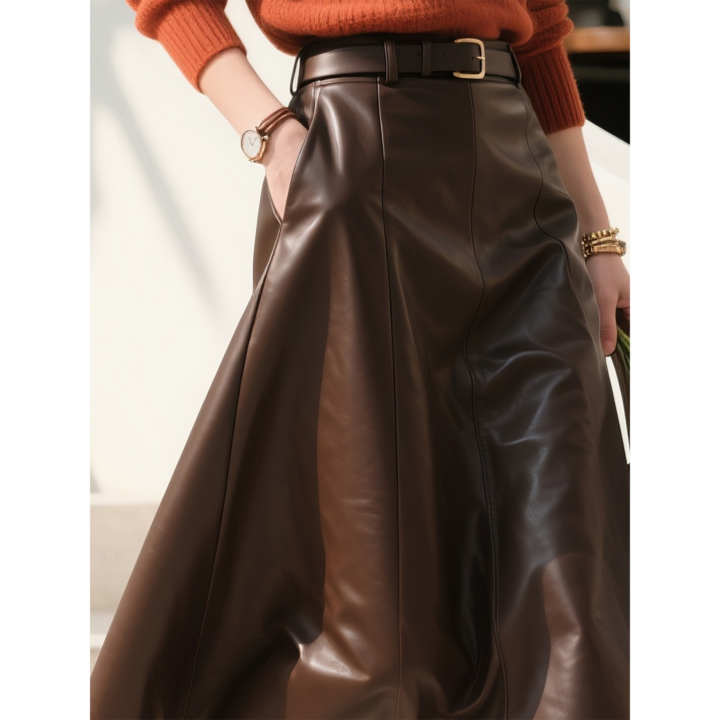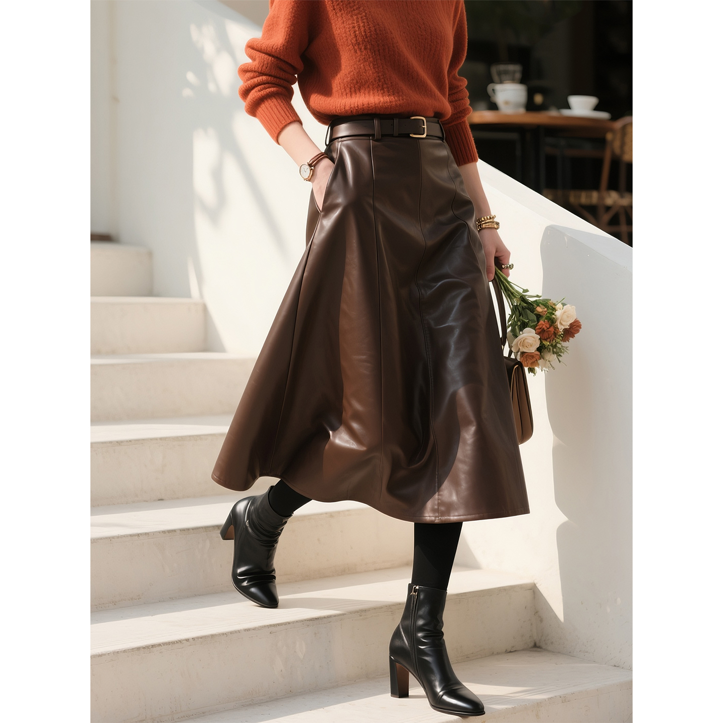 棕色高腰皮裙半身裙女2025年秋冬新款美拉德时尚洋气a字大摆裙子