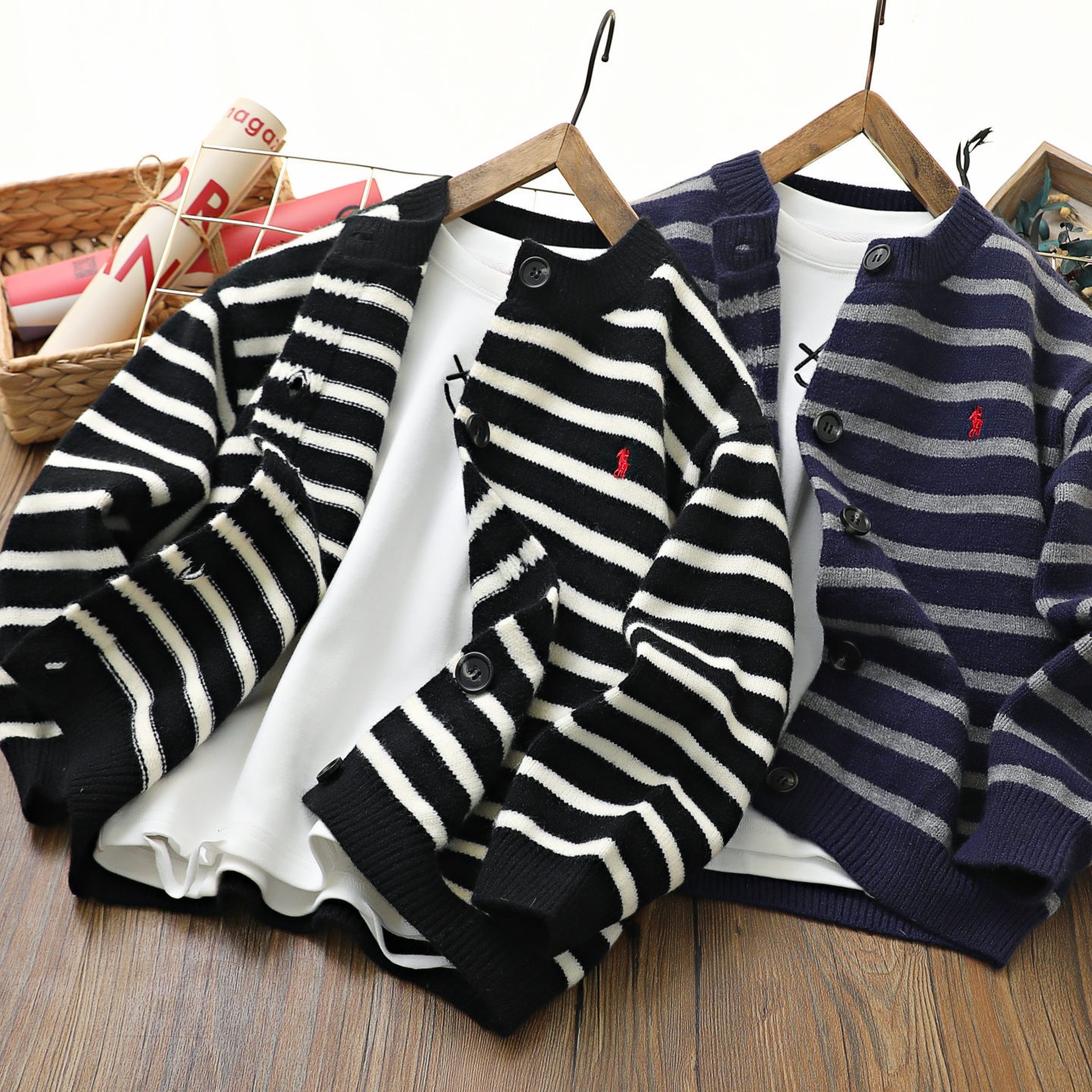 男童春秋毛衣针织条纹开衫潮