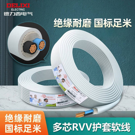 德力西家装电线RVV国标铜芯线家用纯铜阻燃电缆明装护套线