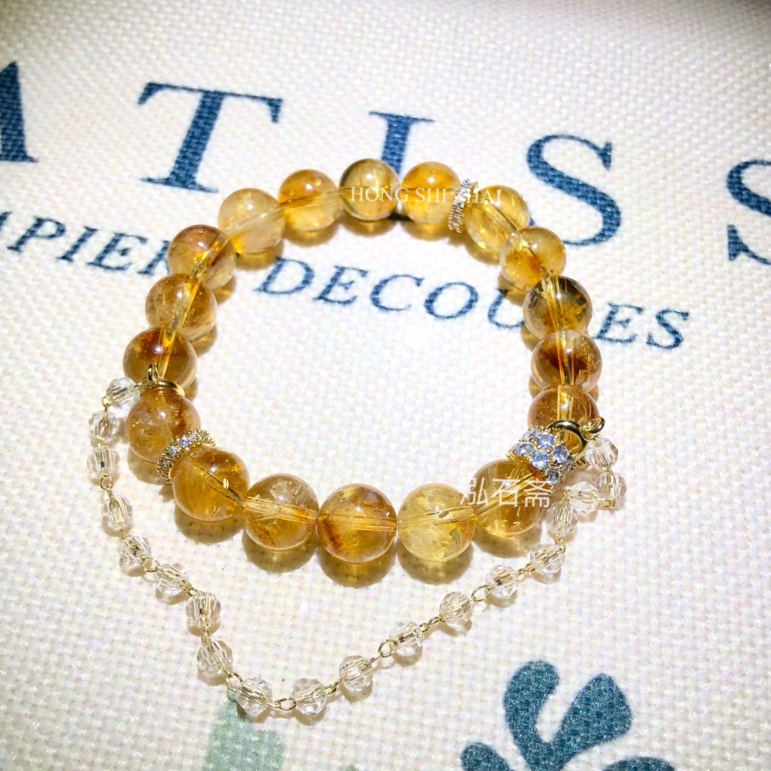 T491吸金石天然黄水晶黄阿塞水晶手串金字塔彩虹暴力cai约9-10mm