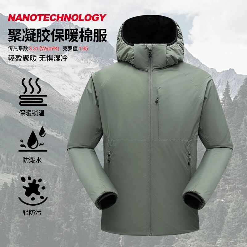 茑家!户外轻量化连帽棉衣男款防风保暖运动抗寒休闲棉服外套