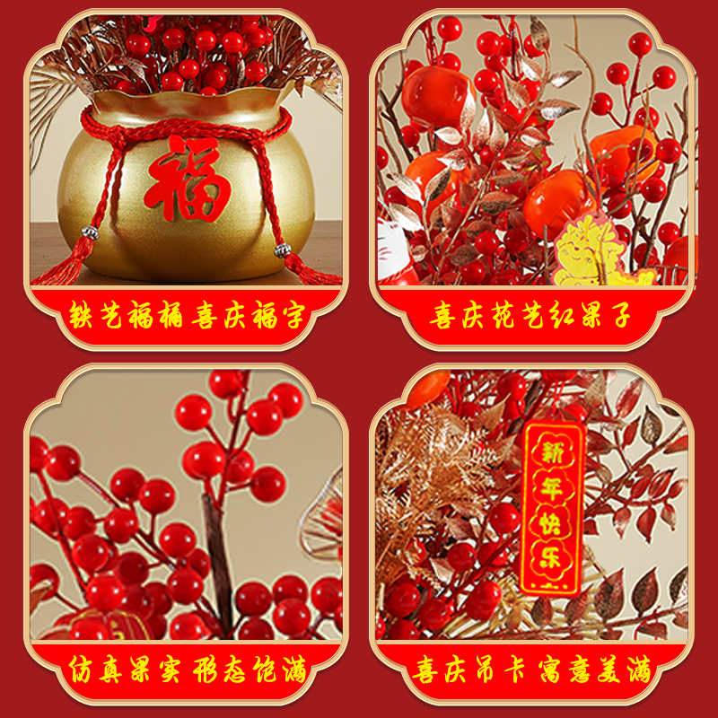年宵花福桶发财果摆件过年乔迁之喜装饰用品新居布置红果仿真花