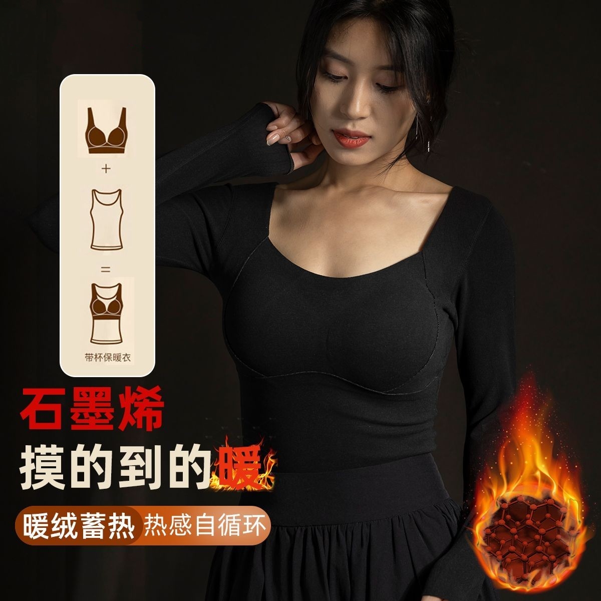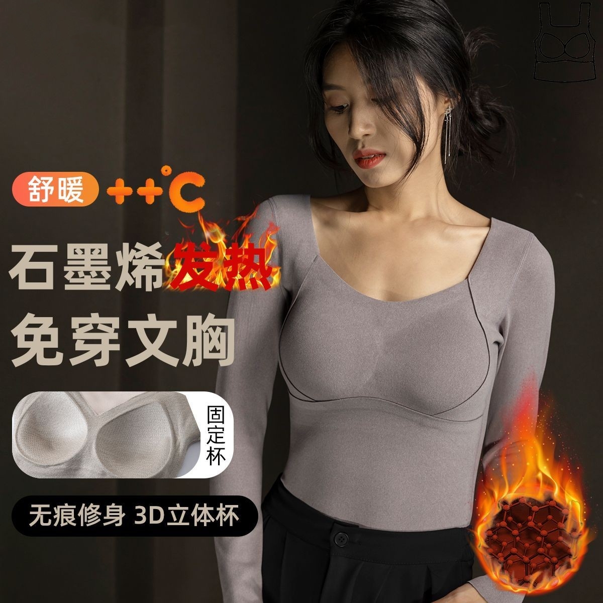南极同款石墨烯保暖上衣女长袖一体式加绒加厚内搭发热打底衫秋冬
