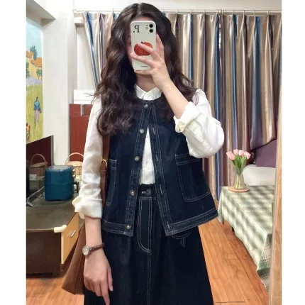 日系复古无袖坎肩牛仔马甲女