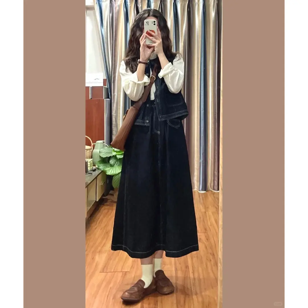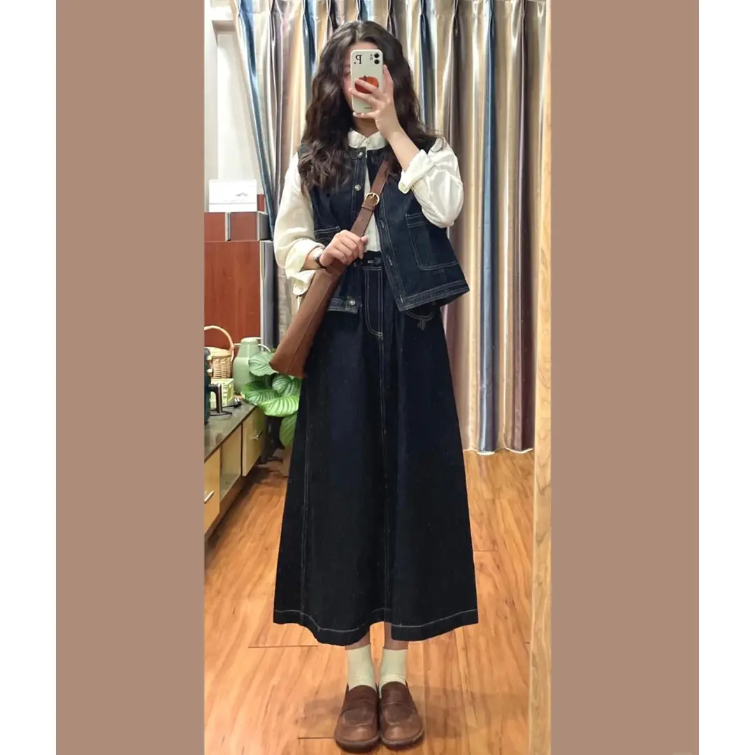 深蓝色牛仔马甲女2025新款春秋衬衫叠穿背心气质工装坎肩马夹外套