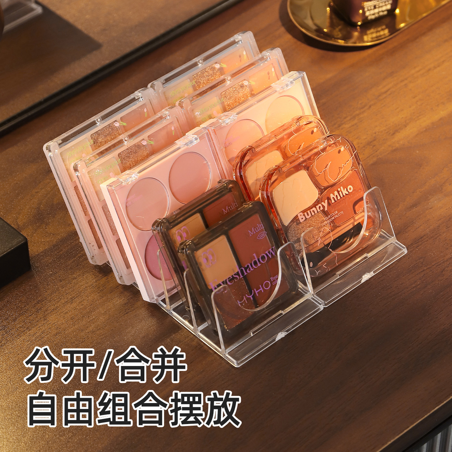 眼影盘粉饼收纳架透明分隔盒子彩妆架子化妆品桌面分格展示置物架