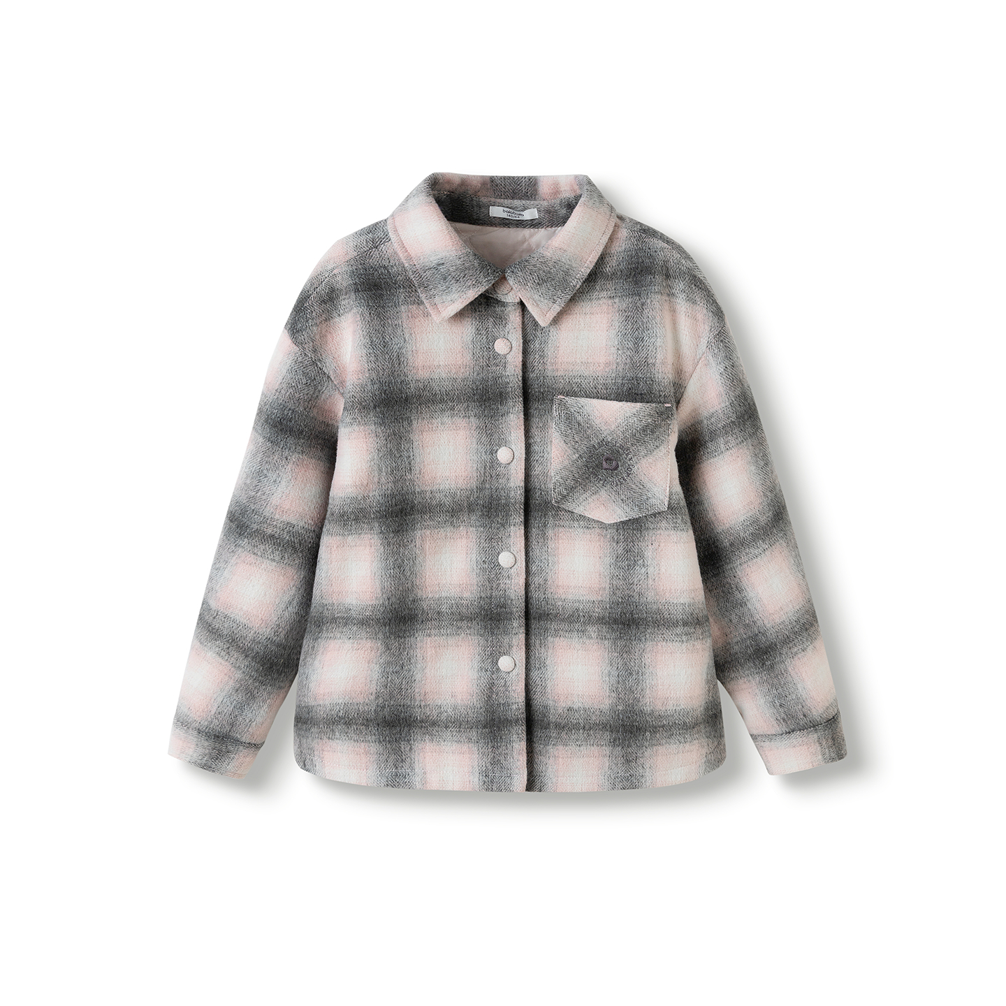 商场同款巴拉巴拉儿童棉服女童格纹衬衫式外套2025冬装新款童装潮