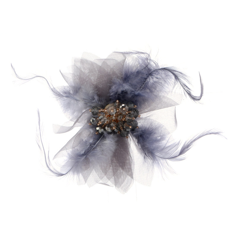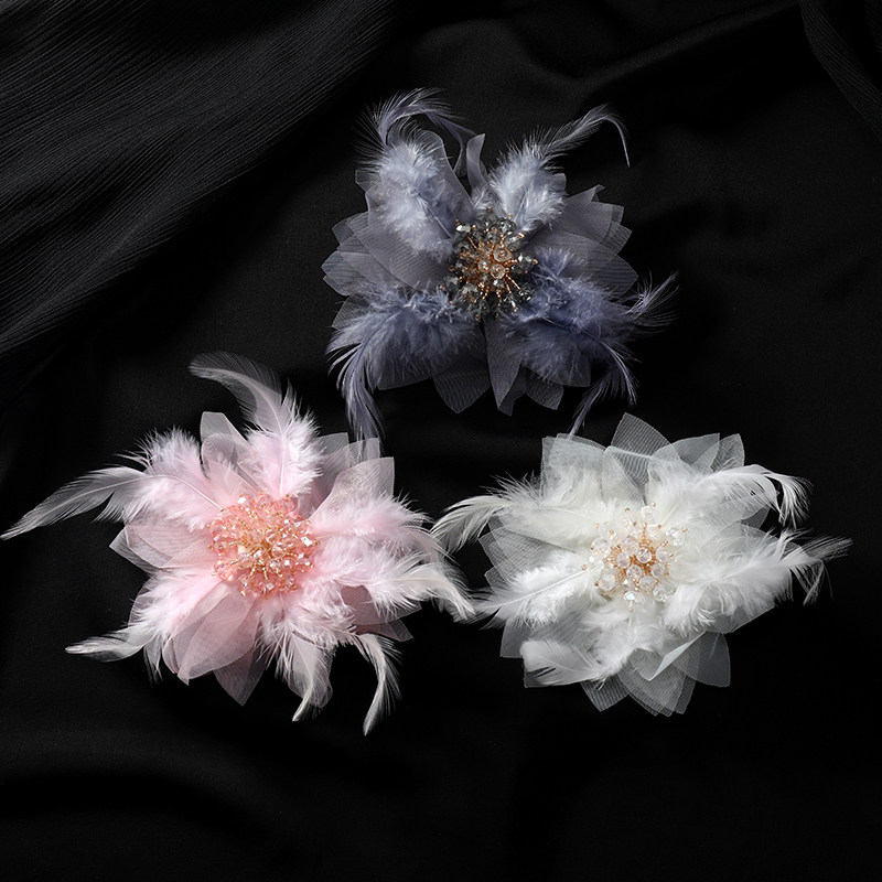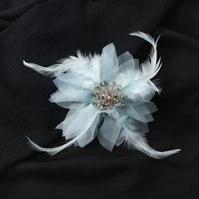 韩版羽毛纱网胸花轻奢气质胸针百搭花朵大衣别针水晶发夹外套配饰