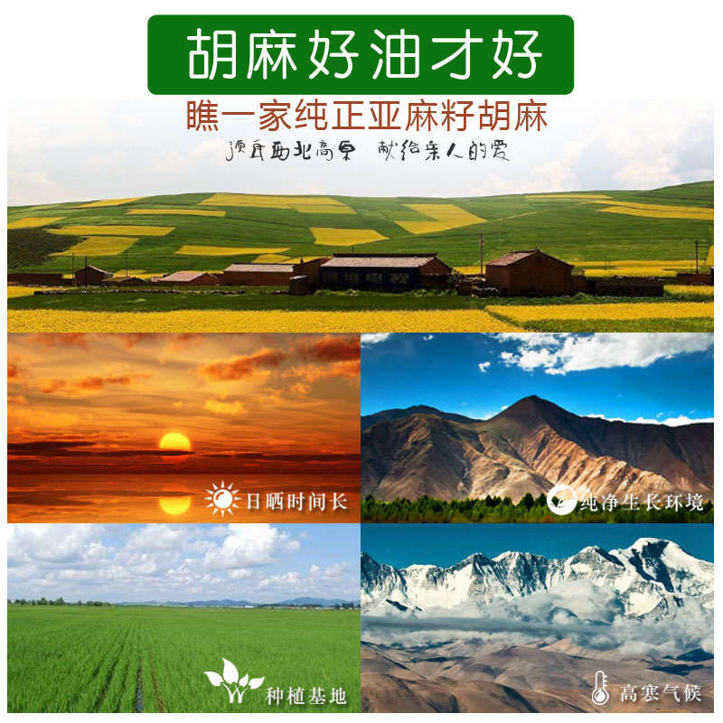 瞧一家食用油纯胡麻油家用亚麻籽油桶装物理压榨植物油宁夏1.8L装