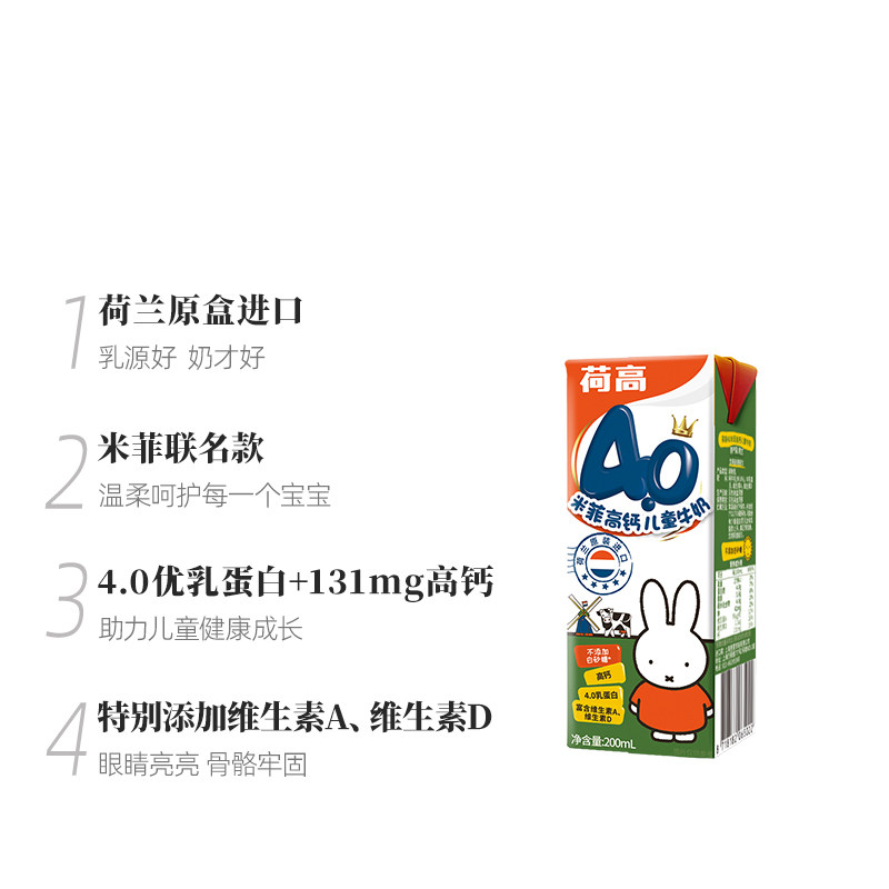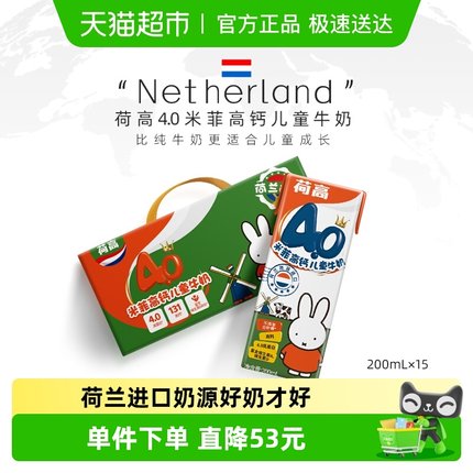 荷兰进口荷高米菲兔4.0儿童牛奶高钙全脂200ml*15盒装整箱送礼盒