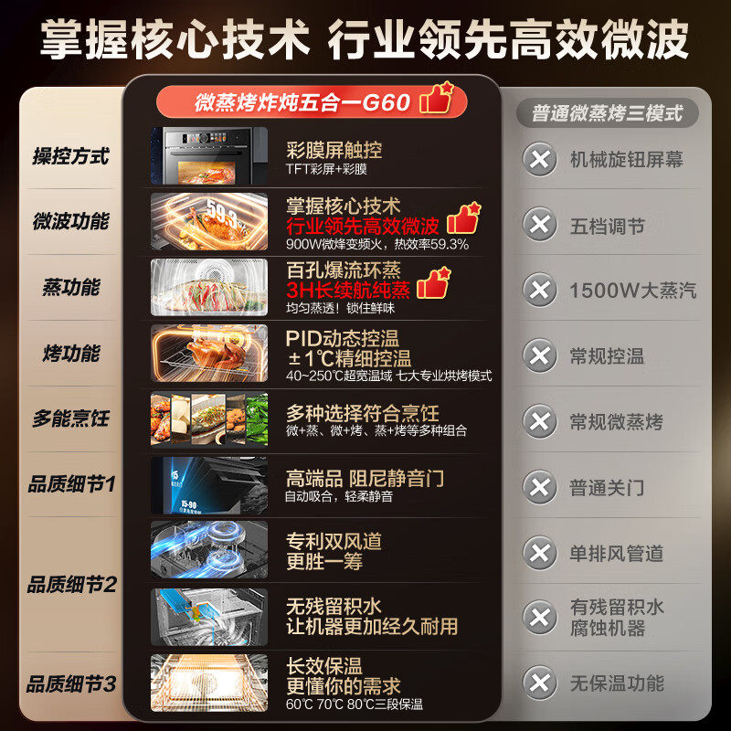 政府补贴格兰仕嵌入式微蒸烤炸炖五合一体机55L大容量多功能彩屏