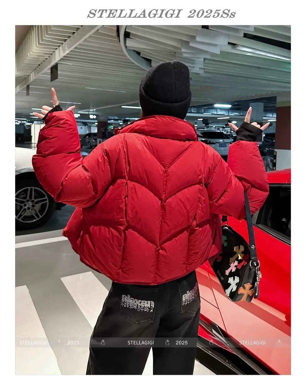 欧货红色立领显白90白鸭绒羽绒服2025冬季新款高加厚保暖外套女潮