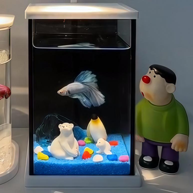 斗鱼小型鱼缸网红创意专用玻璃桌面网红造景生态装饰观赏鱼水族箱