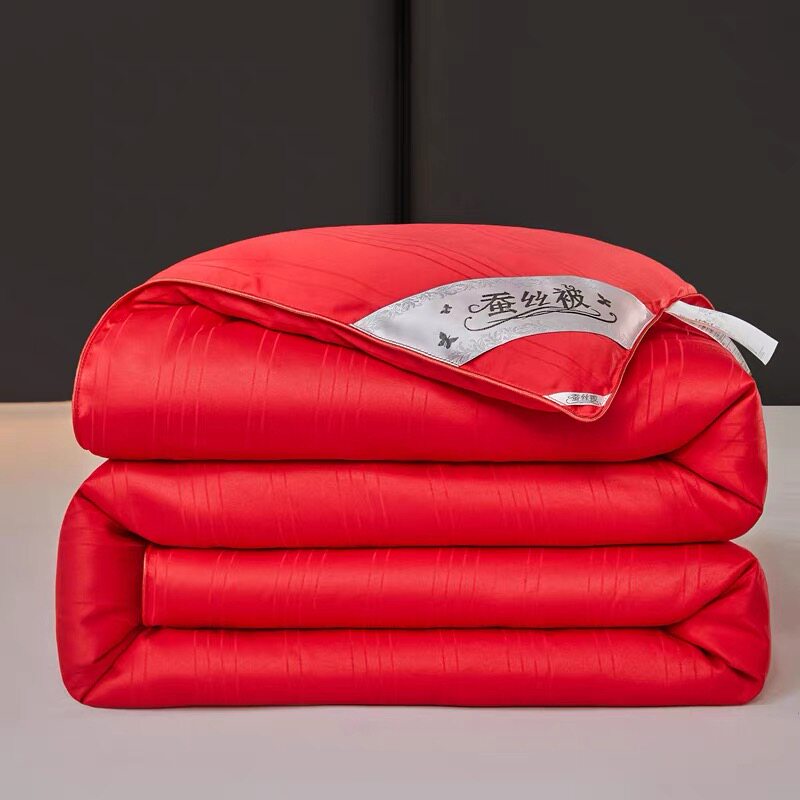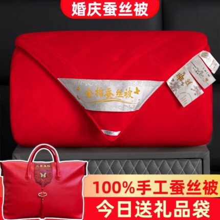 手工蚕丝被100%桑蚕丝子母被春秋被加厚冬被结婚被芯婚庆红色被子