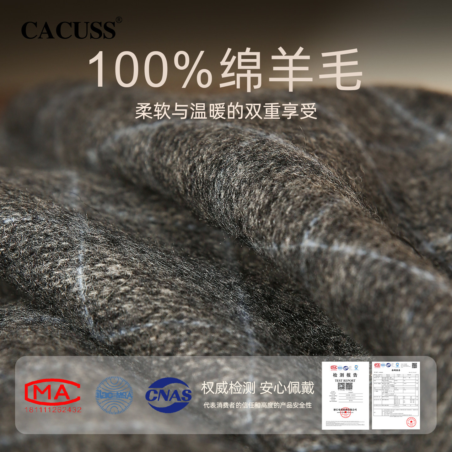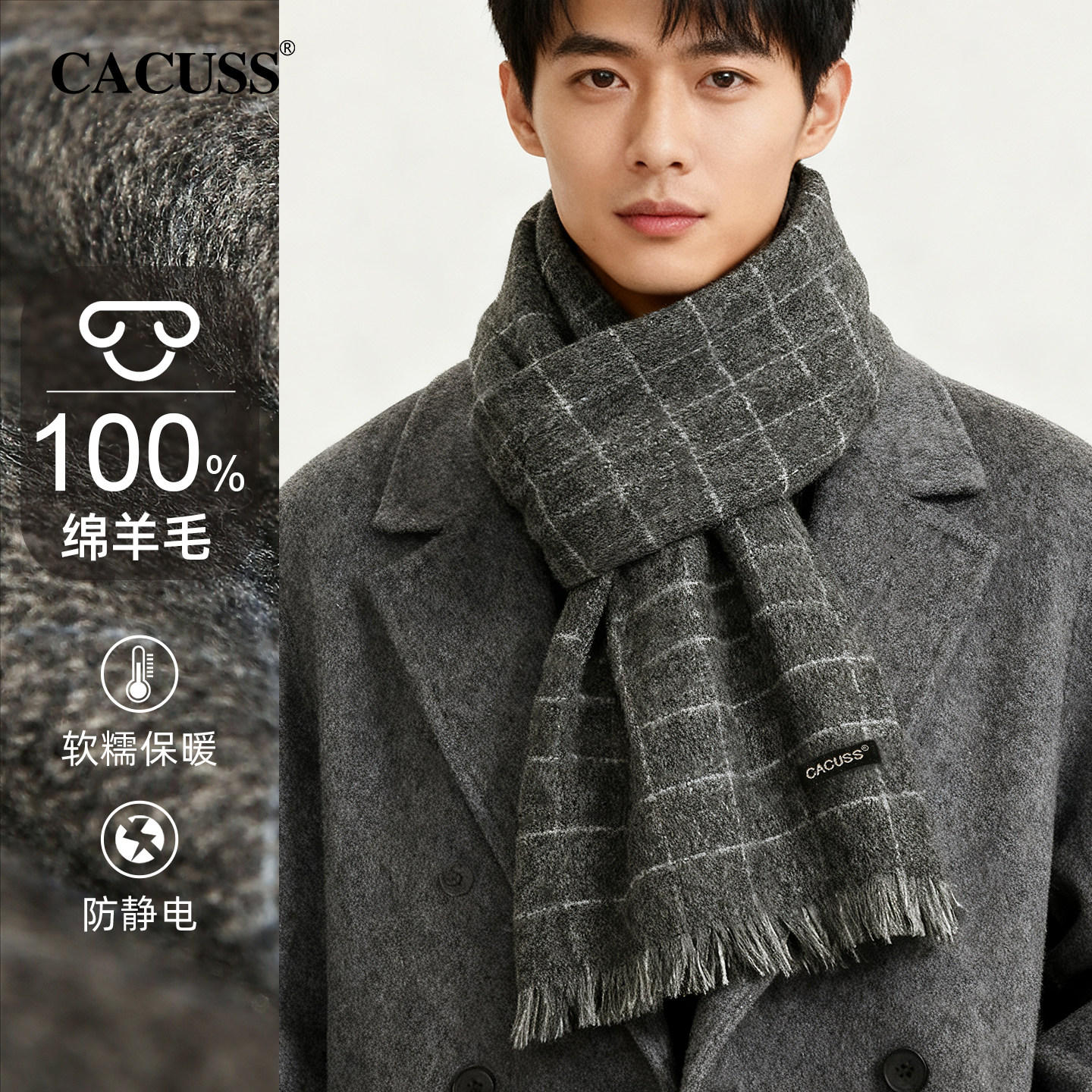 CACUSS冬季新款纯羊毛围巾男士