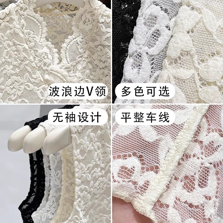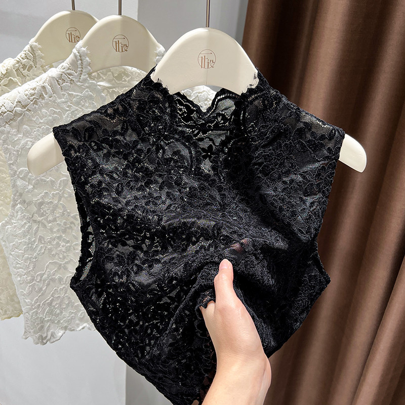 柔软花纹蕾丝假衣领子打底衫无袖背心女秋冬V领百搭高端内搭网纱