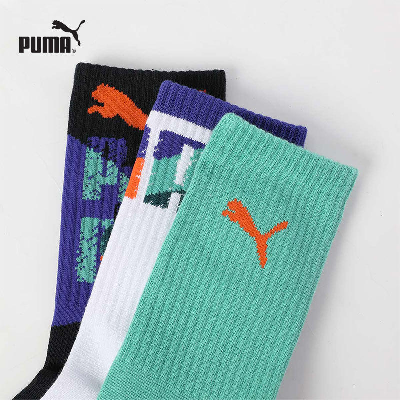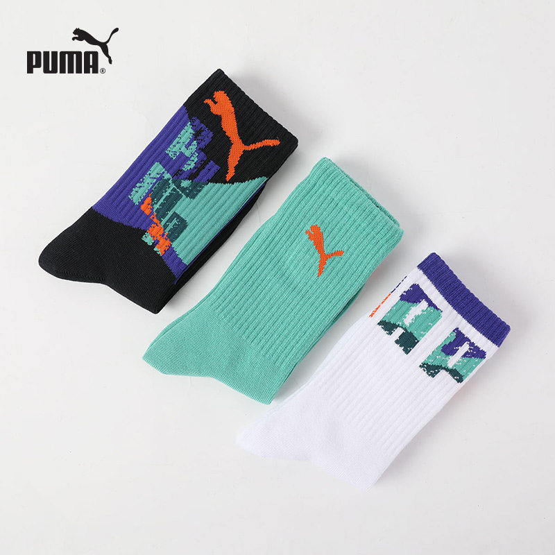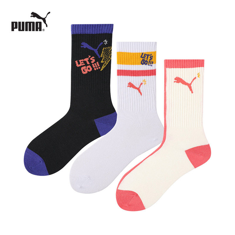 PUMA彪马袜子男女儿童成人通用运动休闲吸汗透气纯棉高筒袜3双装