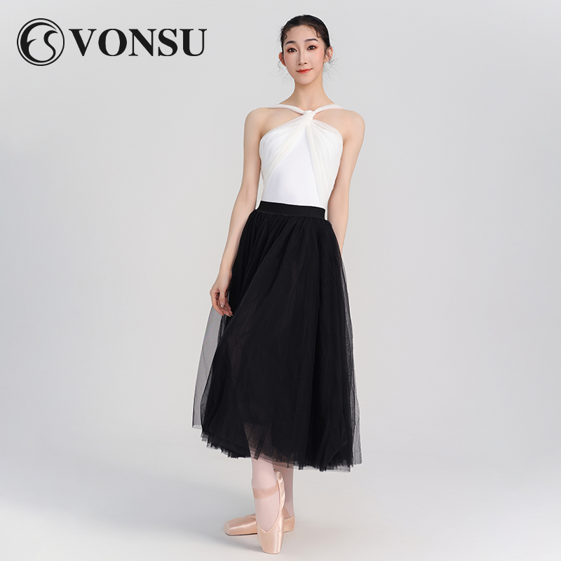 梵舒芭蕾舞蹈服成人高端空中芭蕾练功服白色吊带体服黑色纱裙套装