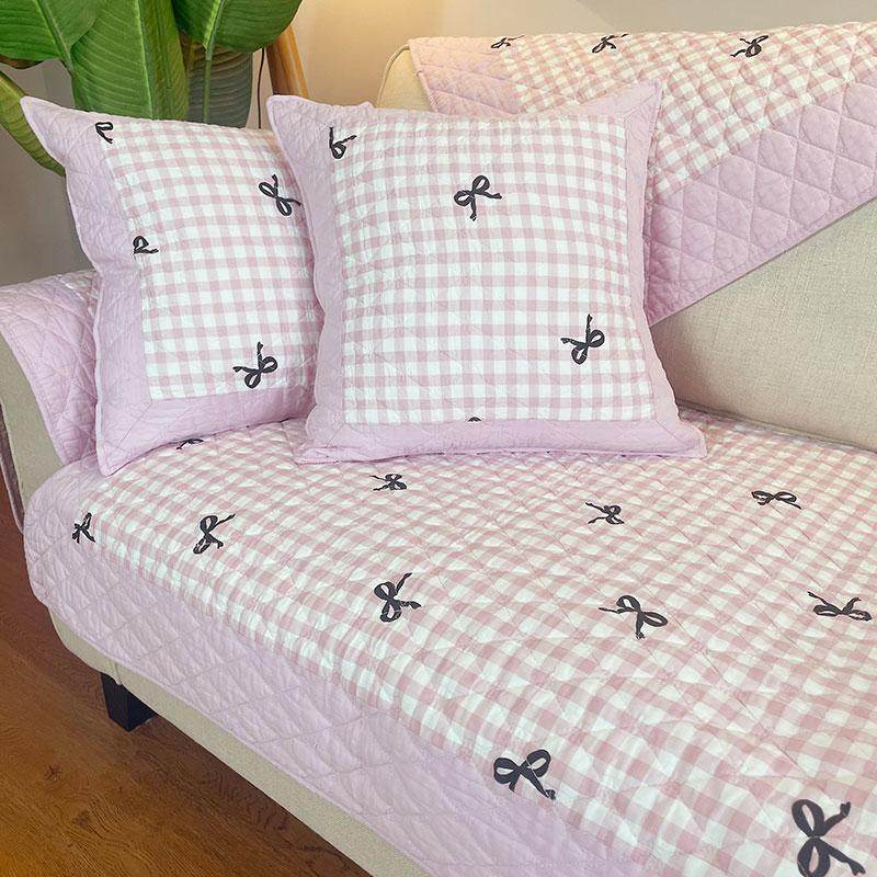 粉色格子全棉加厚斜纹防滑沙发垫子四季通用全棉简约现代坐垫韩式