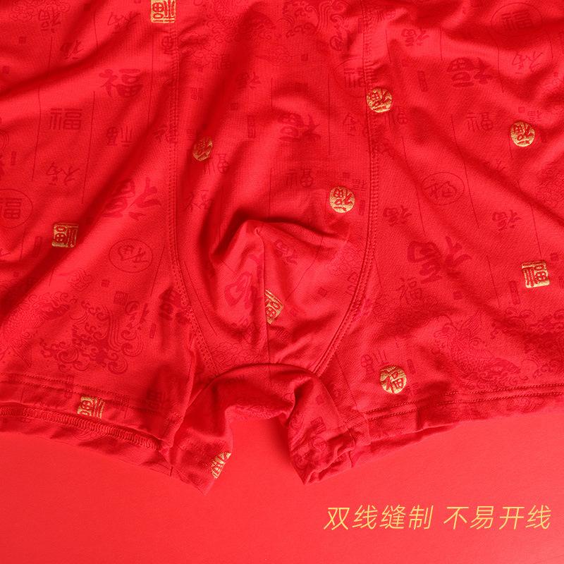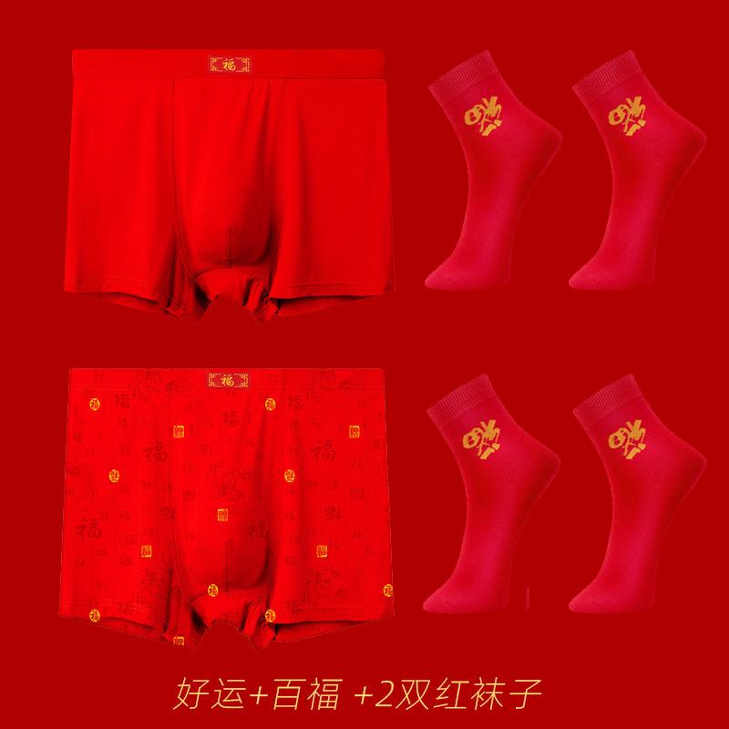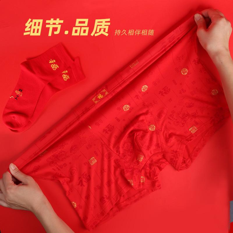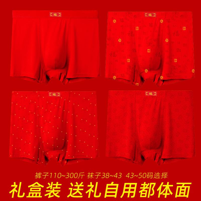 礼盒装本命年内裤男红色送礼男士平角裤莫代尔红袜子大码肥佬结婚