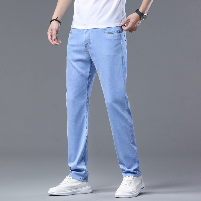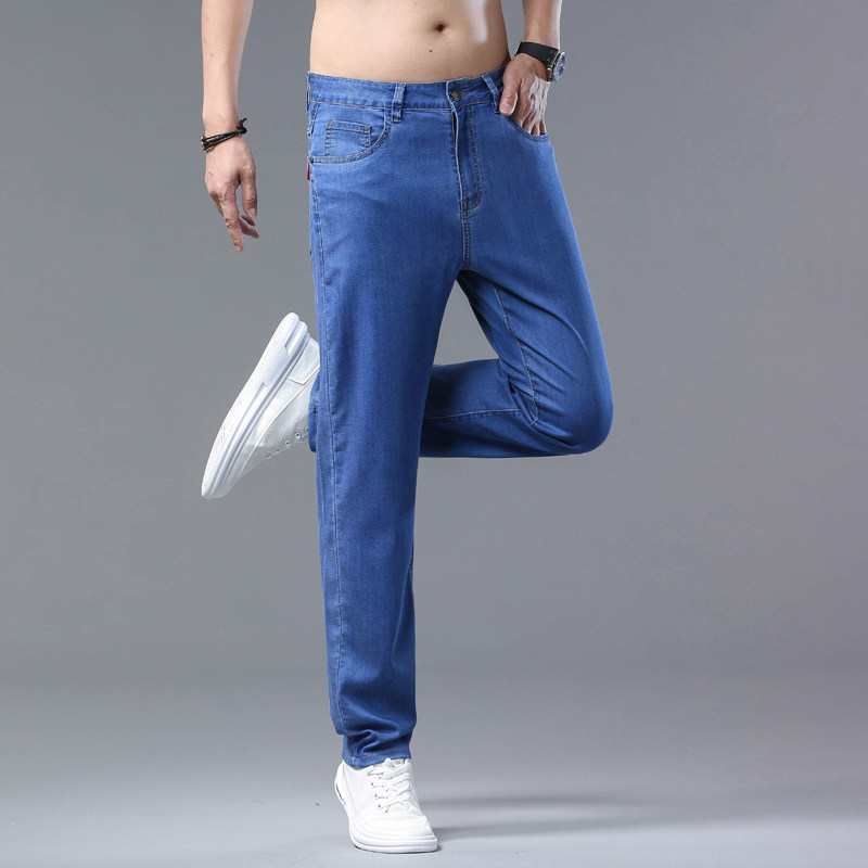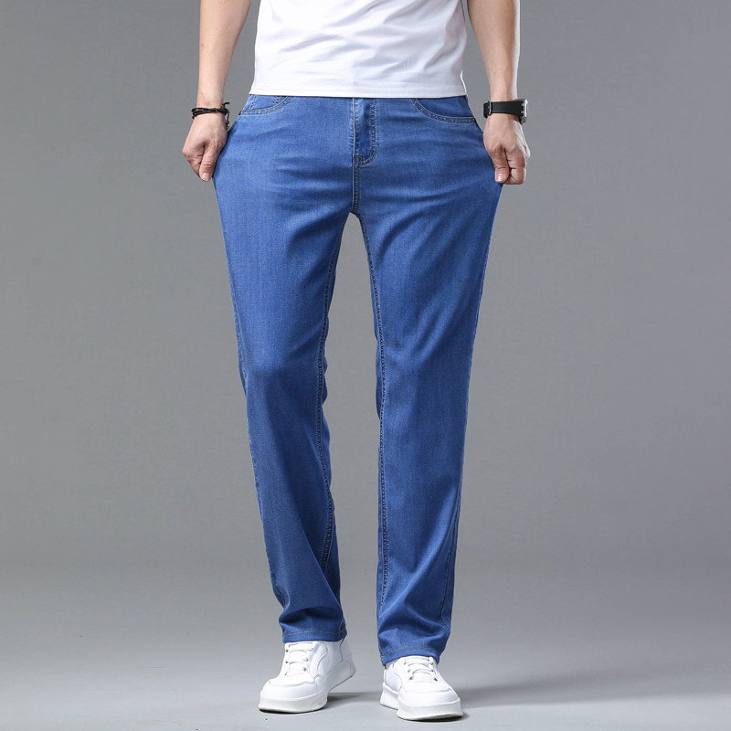 天丝薄款男士牛仔裤夏季宽松直筒裤超薄夏天中年凉感弹力休闲长裤
