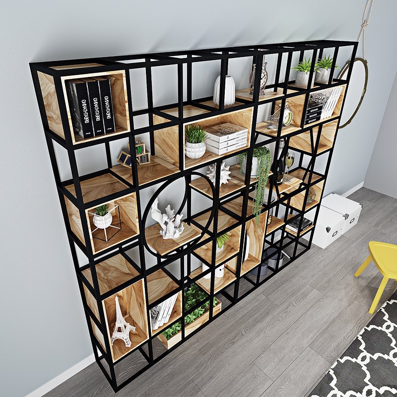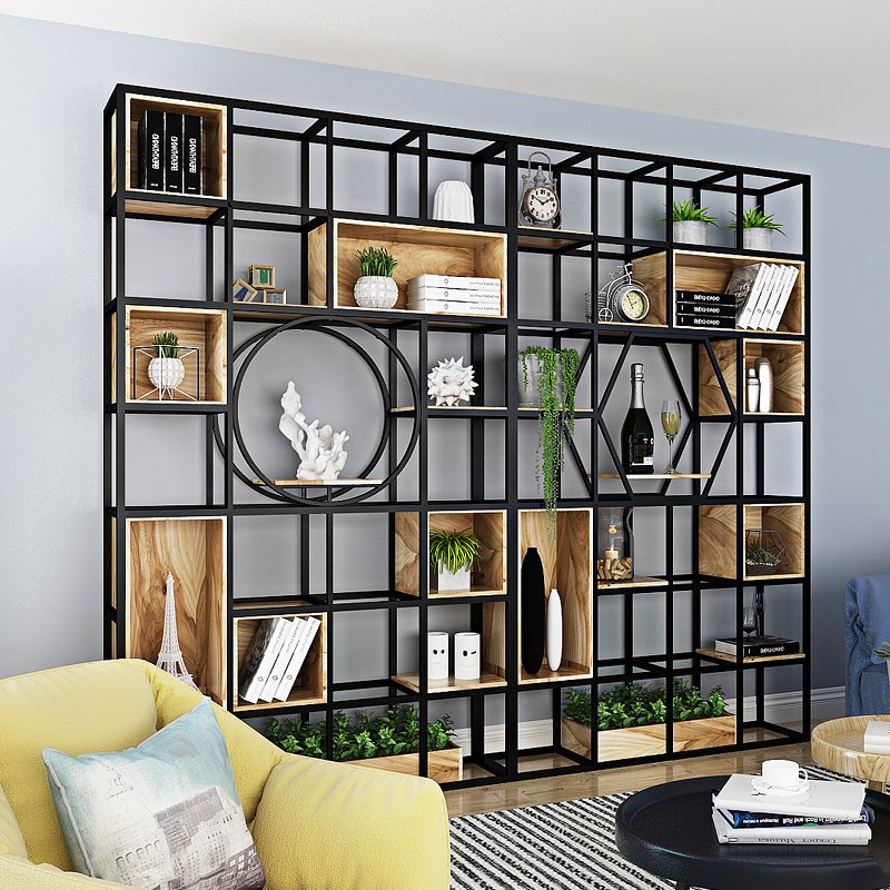 铁艺隔断b墙屏风实木新中式玄关柜工业风镂空现代网红装饰置物书