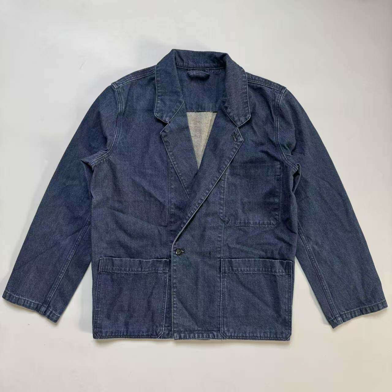 重磅水洗复古牛仔单排扣男单西