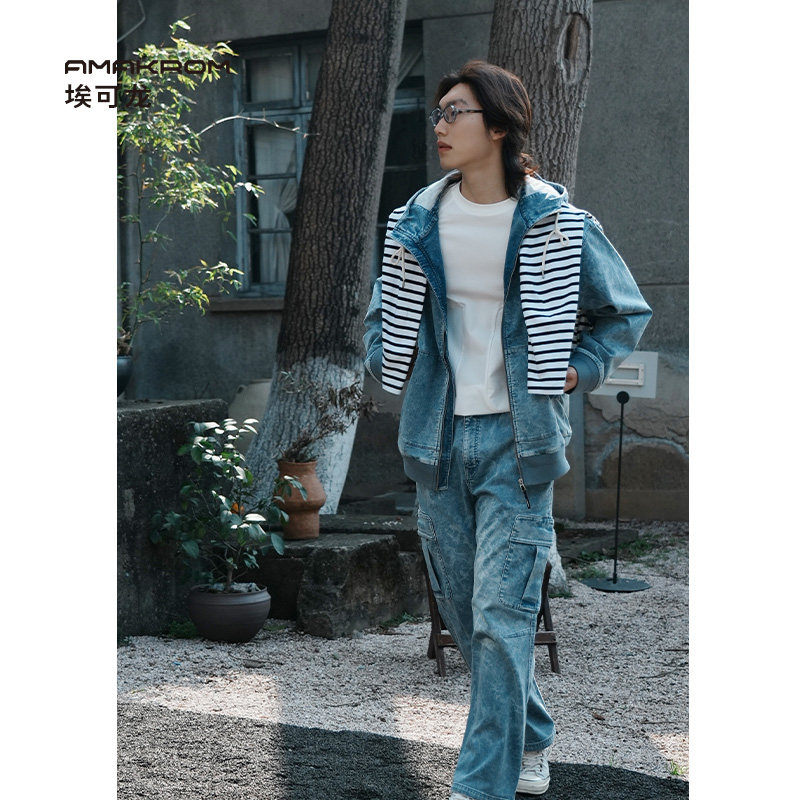 【博主同款】AMAKROM男装春夏复古开衫宽松休闲连帽牛仔夹克