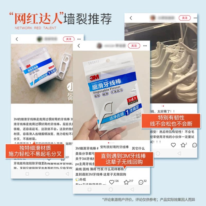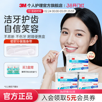 3M细滑牙线棒安全护理一次性强韧超细家庭装独立包装150支收纳盒