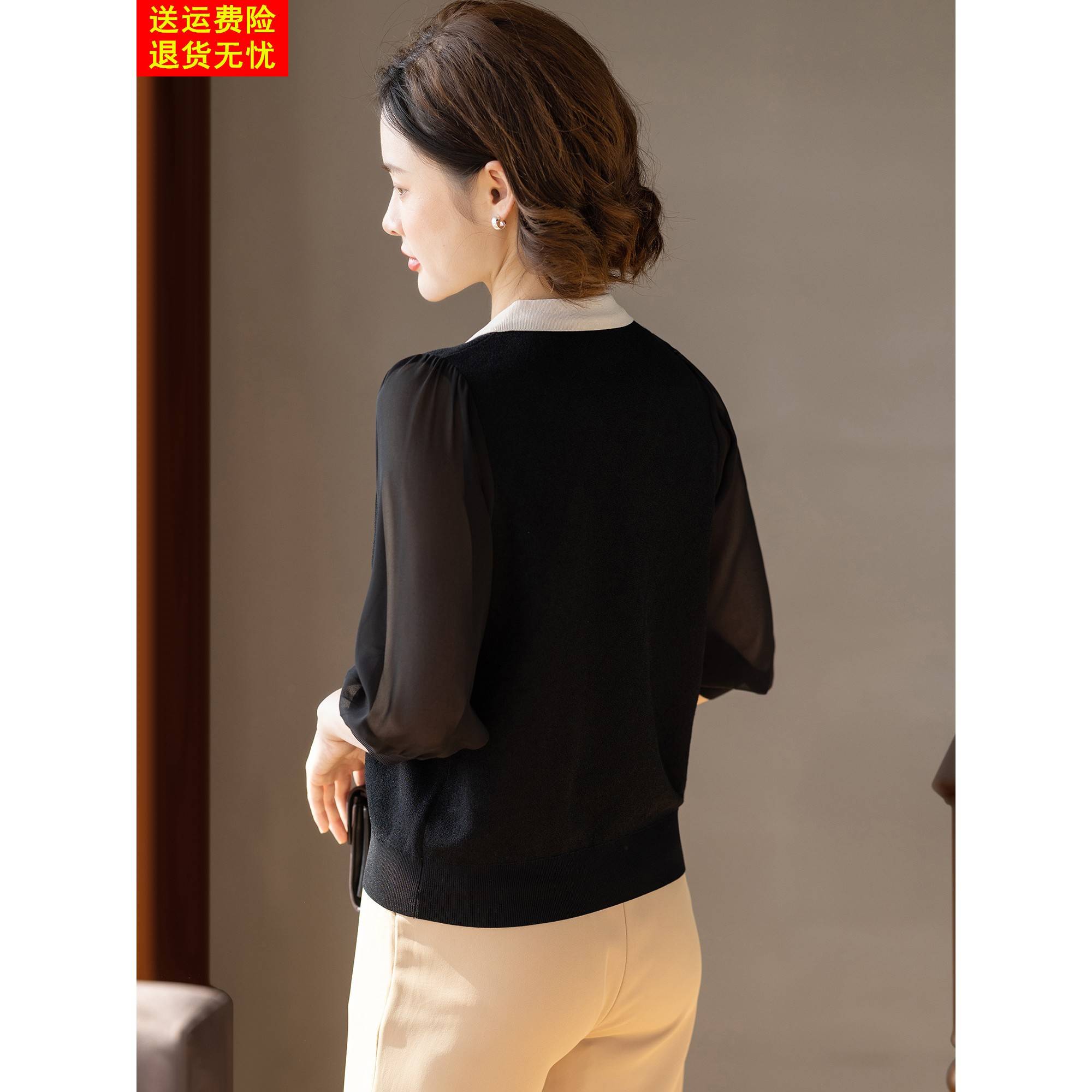 妈妈秋装套装新款洋气质时尚小香风t恤针织衫中老年女春秋上衣服