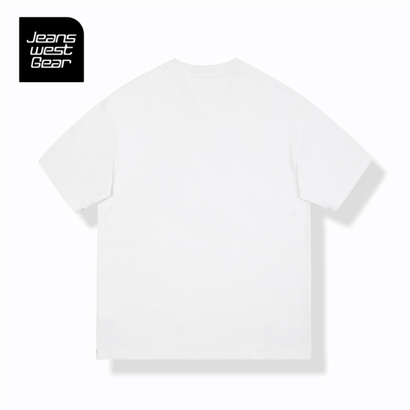 真维斯盖尔大码品牌重磅无性别男女炸街七彩字母短袖白色t恤圆领