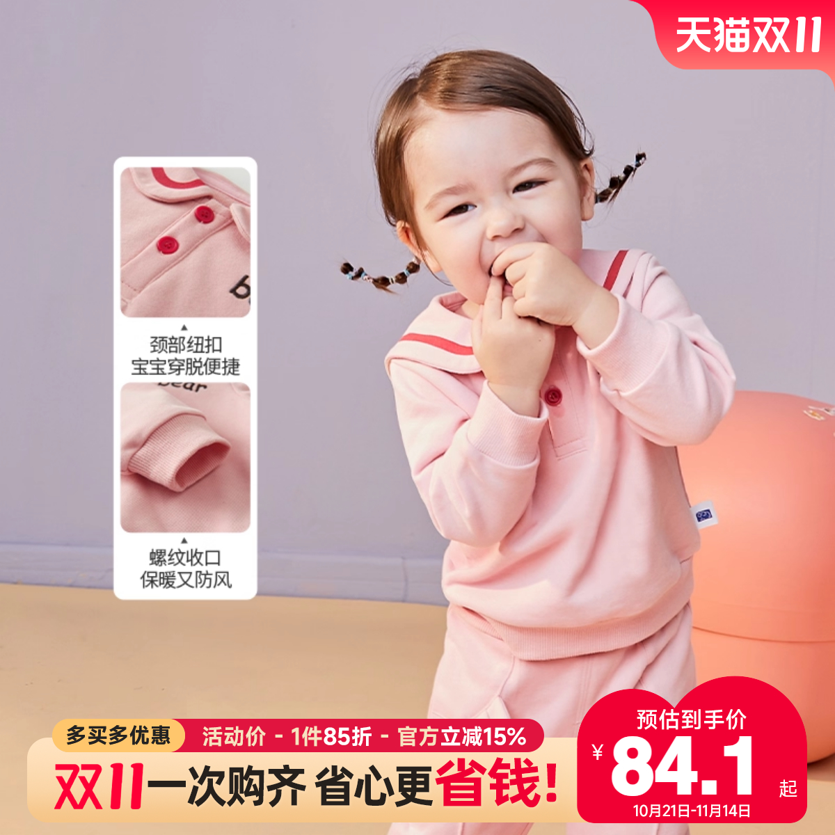 女宝宝秋装套装娃娃领海军风衣服男童裤子婴儿卫衣两件套儿童童装